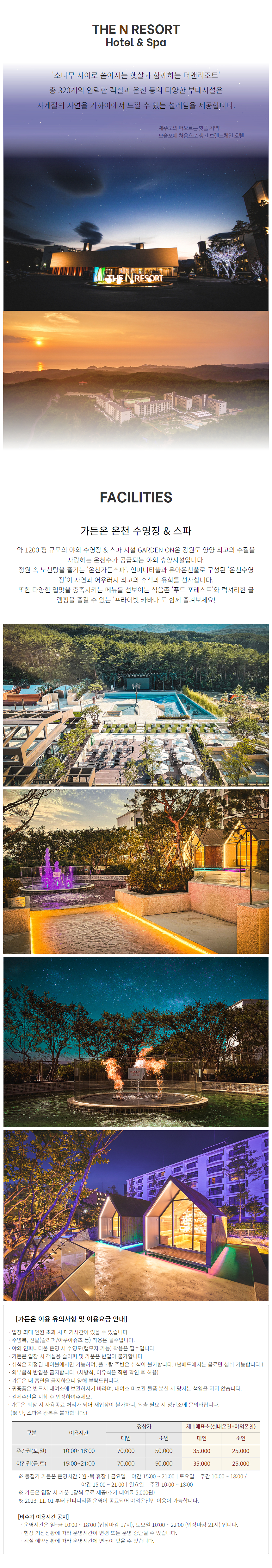 ㆍ가든온 온천사우나 운영 시간 : 금 15:00~21:00, 토 10:00~21:00, 일 10:00~18:00 (입장마감 1시간전)